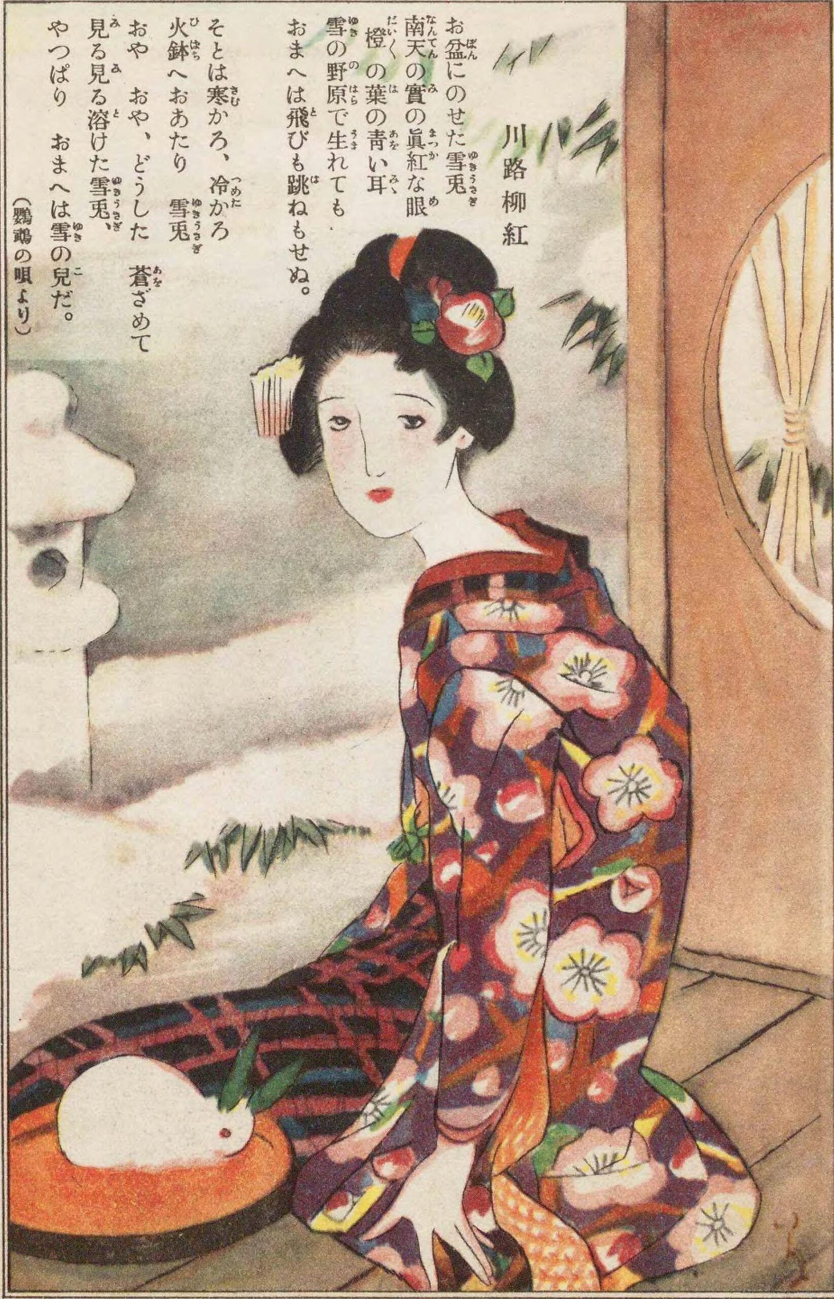 雪達磨 2025年10月8日 ・大小の雪玉を積み重ねて作る達磨。・木炭や笹の葉で顔を作る。・「雪兎」は雪で作った兎の形。・「雪釣」は紐に木炭をぶら下げて雪を付着させて大きくする遊び。読みゆきだるま分類生活音数5 竹久夢二『少女倶楽部 6(12)』雪兎 ゆきだるま
